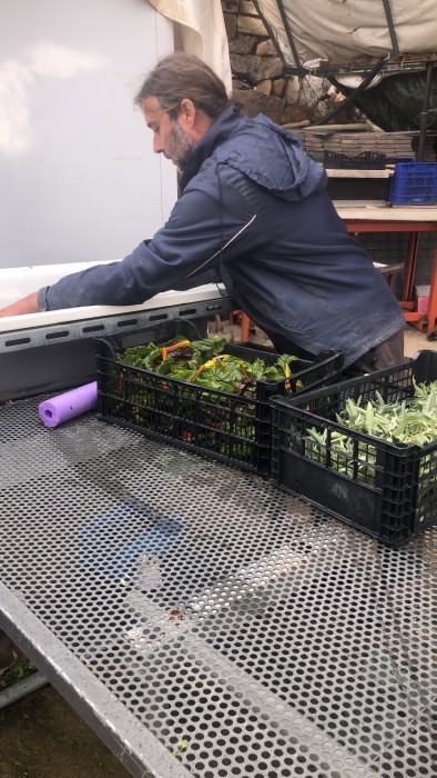 Productos disponibles (sujeto a la temporada): tomate, berenjena calabacín, coles, acelgas, espinacas, pimientos, remolacha, zanahorias, patatas, judiones, cebolletas, remolachas, lechugas, fresas, acelgas, espárragos, espinacas, rúcula, moras, frambuesas, calabazas...
