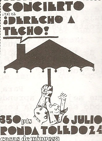 Estamos recopilando con mucho amor parte de la memoria de esos años a través de sus campañas visuales y de propaganda. Algunos de los diseños conseguidos hablan de campañas antimilitaristas, otros de acciones por la prohibición de la tauromaquia, otras de la defensa de los espacios okupados de la época… Otras, también, del derecho a techo y reclamaciones por la vivienda.