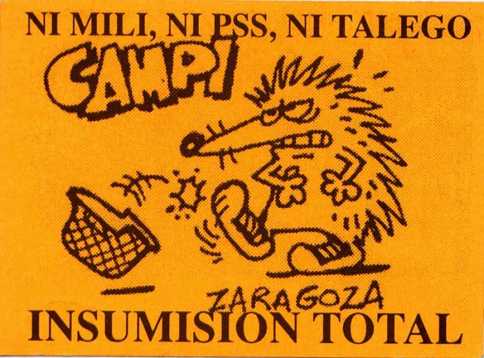 Los movimientos juveniles de ese entonces venían impulsados por lo que se conoció como “autonomía”, “ecologismo social” y otros palabros. Tras la transición de los primeros años ochenta, las fuerzas institucionales y políticas se venían asentando y pretendían desactivar la rebeldía. Tocaba trabajar desde abajo y por fuera de organizaciones burocráticas para mantener viva la llama. Una miríada de movimientos (antimilitaristas, antinucleares, feministas, antirracistas, okupas) se expresaron a través de pequeños flyers y pegatinas. Los memes de otra época.