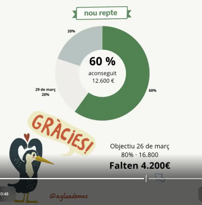 ¡Hoy acabamos de superar el 60% del objetivo final de recaudación! Haber llegado hasta aquí nos llena de ilusión, fuerza y esperanza para continuar adelante con esta campaña de Goteo tan intensa que estamos llevando a cabo. Muchas gracias, de nuevo, a todo el mundo que lo está haciendo posible.